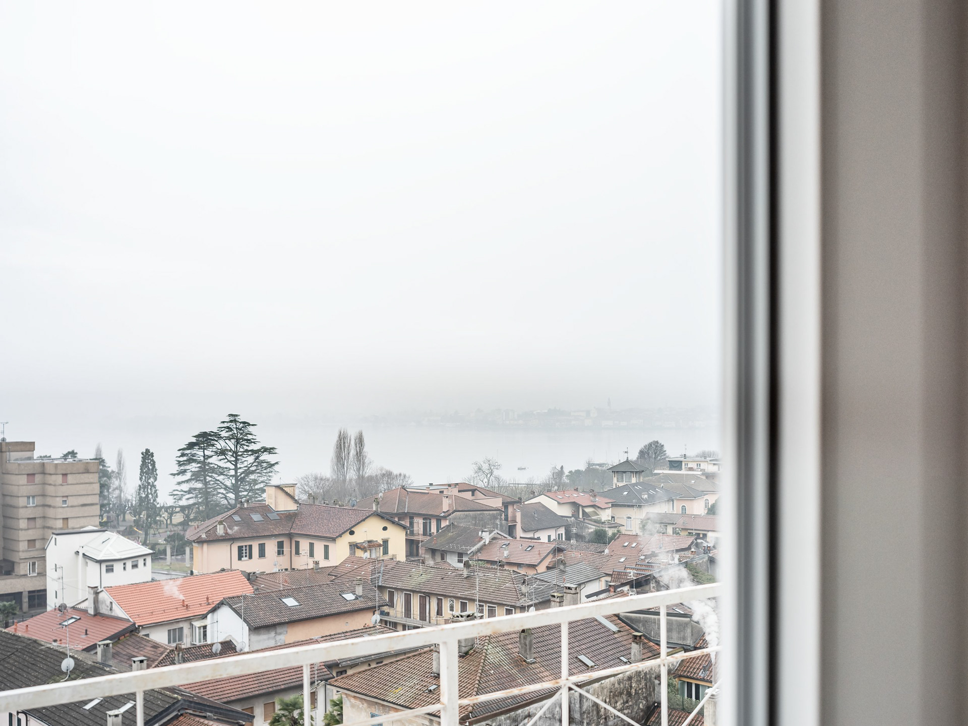 The project involves the subdivision of a four-room apartment located on the sixth floor of a residential building in Angera, overlooking Lake Maggiore and the Rocca di Angera.